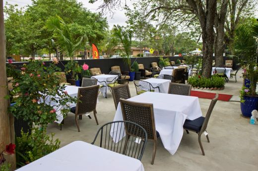 This thoughtfully designed space offers an elegant open-air retreat where guests can unwind and indulge in fine cigars while enjoying the restaurant’s full service. The covered patio features comfortable, high-end seating arrangements perfect for both intimate conversations and social gatherings.